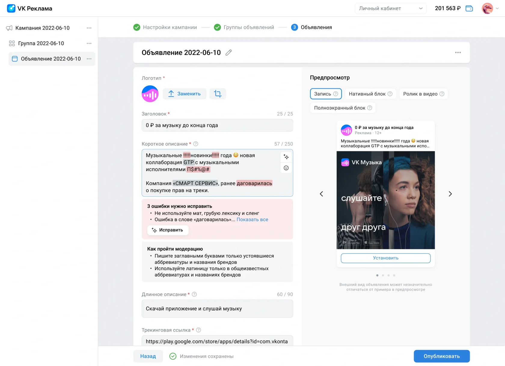 Тут не будет креативных идей или общих правил, только технические параметры и условия с учетом требования ВК.